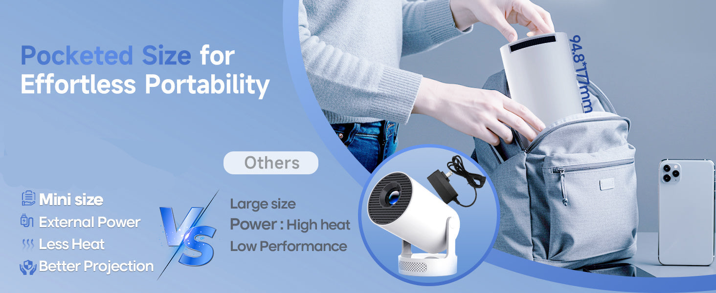 Designed for portability, this mini projector fits effortlessly in your bag or backpack. Set it up in seconds—ideal for outdoor movie nights, business meetings, or spontaneous adventures.